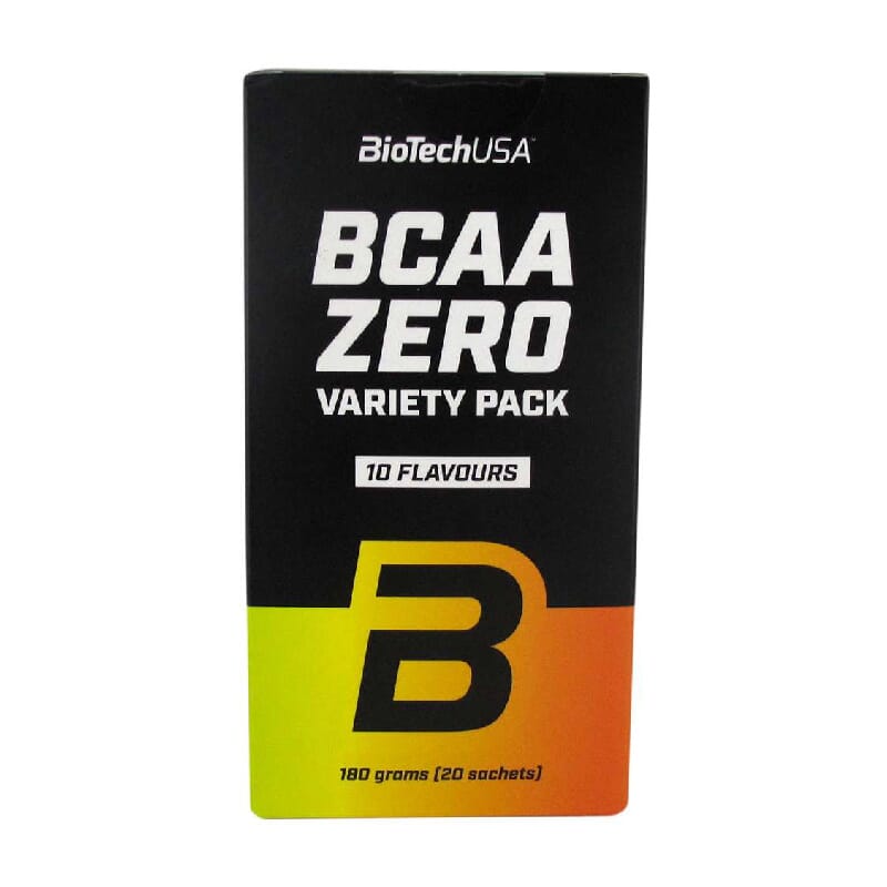 BCAAS Zero Variedad de sabores Pack van Biotech USA is een formule die vertakte aminozuren combineert met L-glutamine en vitamine B6, om het voor de training in te nemen en de spieren langer te behouden.