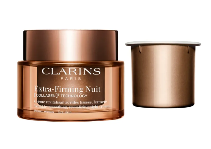 Daarnaast biedt Extra-Firming Nuit een uitzonderlijk comfort voor de droge huid, waarbij de huid gedurende de nacht wordt geregenereerd dankzij niacinamide en avocadopeptiden die de helderheid bevorderen en de huidtextuur verbeteren. Bij het ontwaken ziet de huid er uitgerust uit en klaar om de dag aan te gaan met een frissere en gerejuveneerde uitstraling. De omhullende, lichte en niet-vette textuur geeft een comfortabel gevoel, terwijl de navulbare formule milieuvriendelijker is, waardoor het een ideale optie is voor wie op zoek is naar een complete verstevigende behandeling.