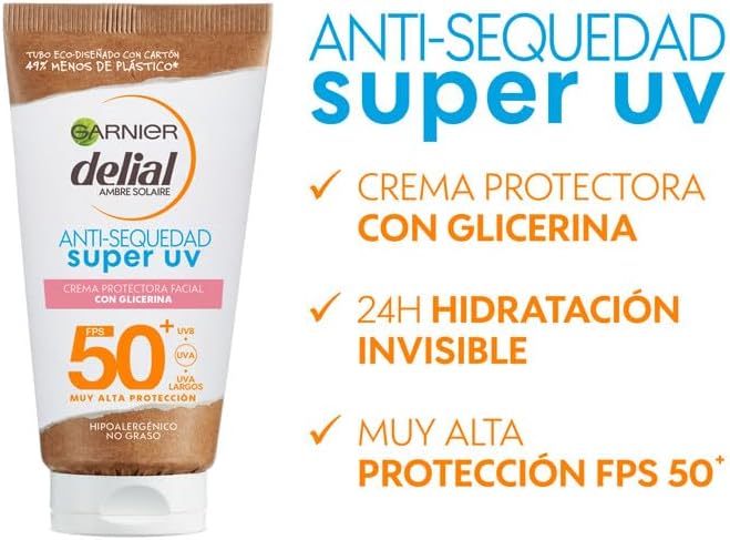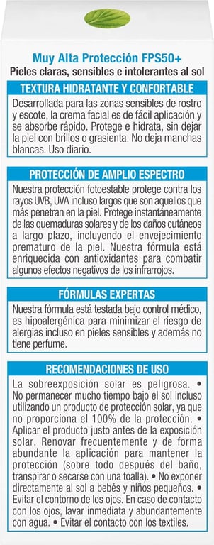 Zoek je een effectieve zonnebescherming voor je gevoelige of zonintolerante huid? Sensitive Advanced Gezichtscrème SPF50+ van Delial werkt tegen UVB-, UVA- en zelfs lange UVA-stralen die het meest in de huid doordringen, op de gevoelige zones van gezicht en hals, biedt hydratatie en laat geen witte vlekken of vettig gevoel achter.