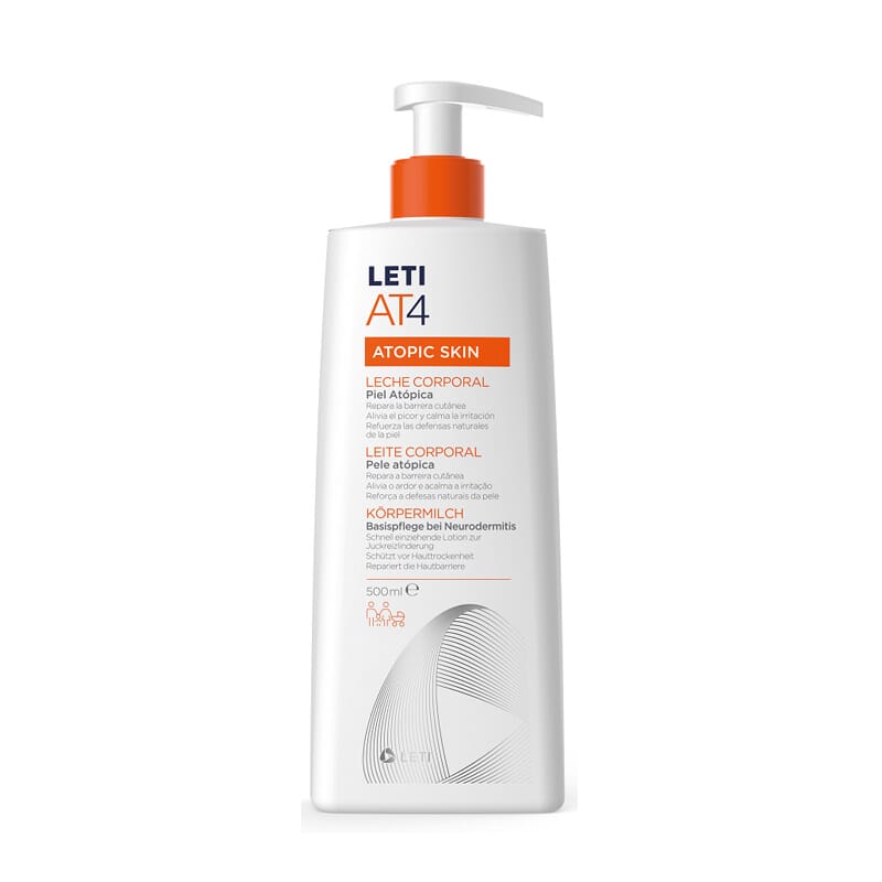 LetiAT4 is een productlijn bedoeld als de meest complete oplossing voor de atopische huid van Laboratorios Leti, experts in huidverzorging en leiders in de markten van atopie, neus- en lipreparatie en gevoelige roodheid.