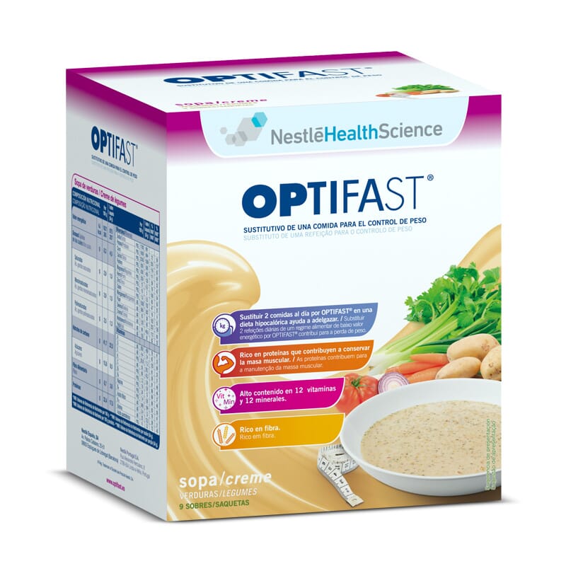 Optifast GROENTESOEP is zeer gemakkelijk en comfortabel te bereiden, het is de ideale aanvulling voor maaltijden en diners, terwijl je helpt de calorie-inname te beheersen zonder afstand te doen van een basis van de traditionele voeding. Door het hoge eiwitgehalte draagt het bij aan het behoud van spiermassa, en het bevat ook een hoog gehalte aan 12 vitaminen en 12 mineralen, evenals een hoog vezelgehalte, dat een goede spijsverteringsgezondheid bevordert.