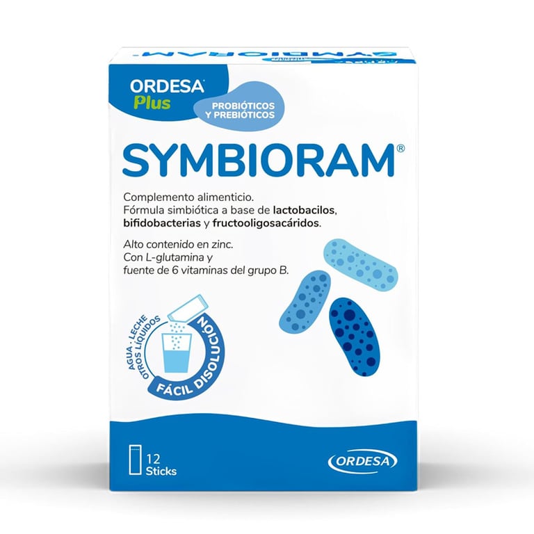 Symbioram van Symbioram is een symbiotisch voedingssupplement. Het combineert lactobacillen, bifidobacteriën en fructooligosachariden, met L‑glutamine, zink en B‑vitamines, om te helpen het juiste functioneren van de spijsverteringsgezondheid en het immuunsysteem te herstellen, omdat het de herstel van de darmflora bevordert. Deze slimme combinatie van probiotica met prebiotica maakt van dit product een symbioot met een krachtige effectieve werking.