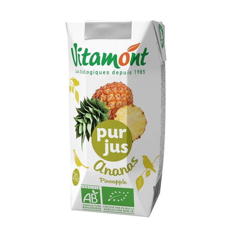 De biologische ananassap 6 x 200 ml van Vitamont is een ecologische drank gemaakt van zorgvuldig geselecteerde ananassen. Het formaat in individuele verpakkingen is ideaal om mee te nemen en op elk moment van de dag te genieten. Zonder toegevoegde suikers en met de volledige natuurlijke fruitsmaak, is het een verfrissende optie voor wie kwaliteit en praktisch gebruik zoekt.