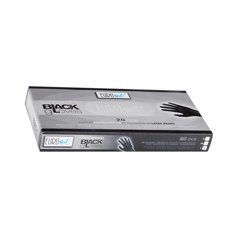 Fabricadas em látex elástico para um ajuste confortável.Cor preta que disfarça manchas e salpicos.Ambidestras, adaptam‑se a ambas as mãos.Resistentes a produtos químicos e manchas.Caixa com 20 unidades descartáveis.Modo de emprego